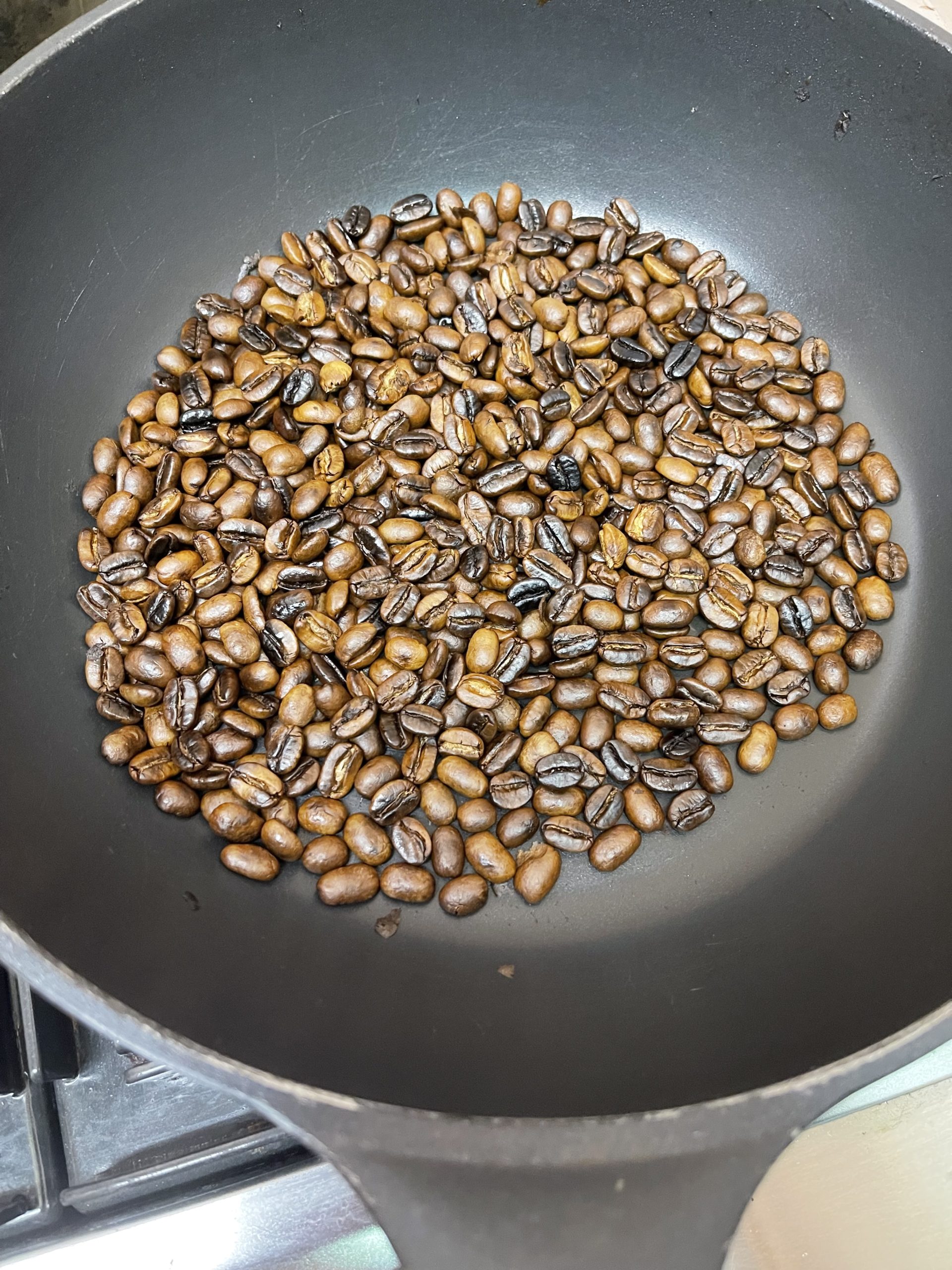 私の好みは中深煎り(シティロースト)くらいのラインで、深煎り過ぎても美味しくないと思う人なので全部が真っ黒になる前に火を止めてしまったのでした。