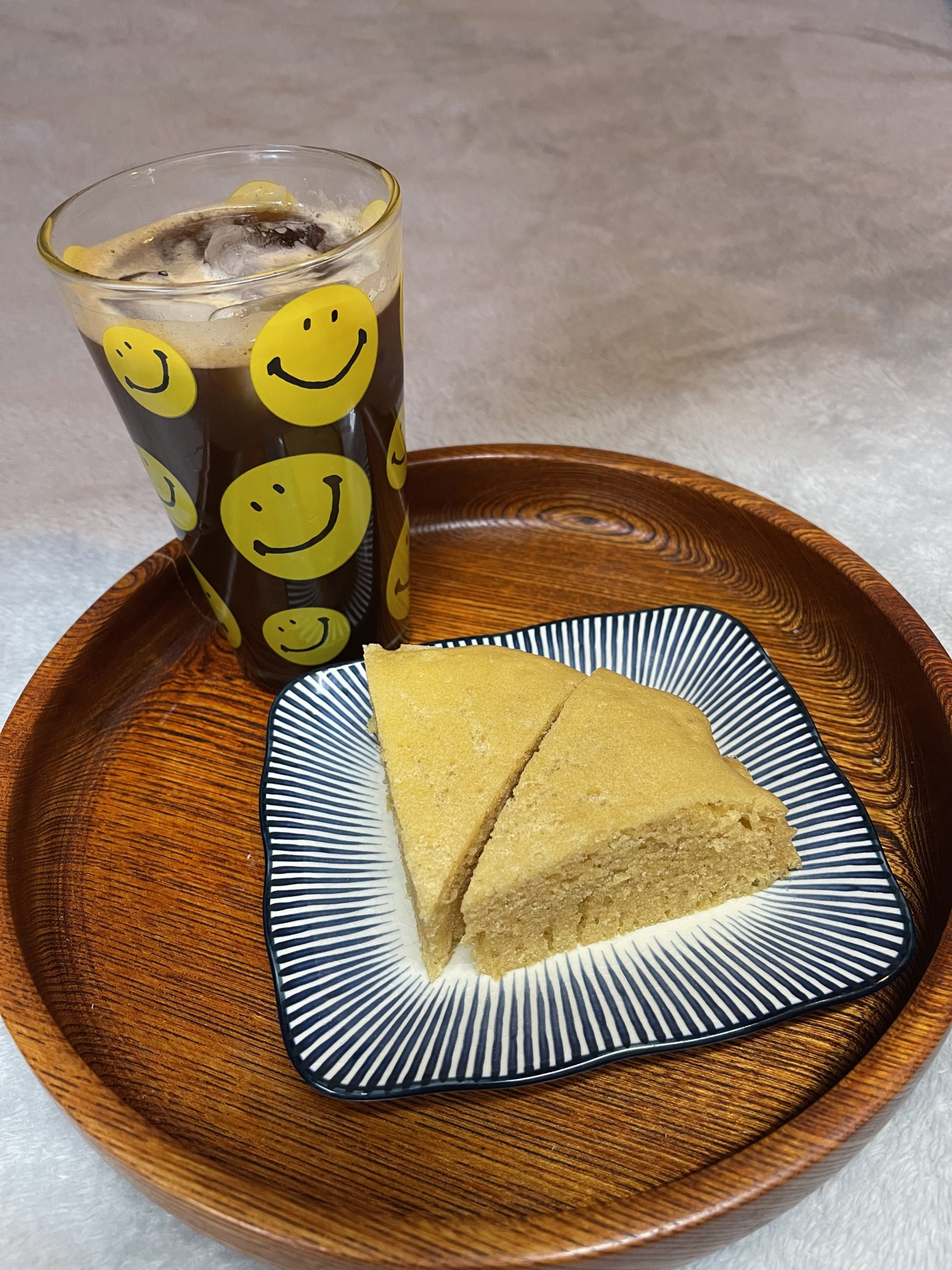 まだ夏だったので少し濃いめにハンドドリップしてアイスコーヒーにして飲んでみました。ちょうどせいろで作ったマーラーカオをお供に。